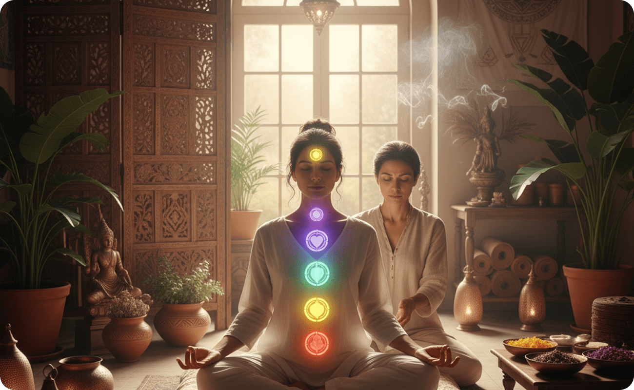 Rooted in the sacred traditions of Hinduism and Buddhism, chakra meditation focuses on aligning the body’s energy wheels, known as “chakras.” The word chakra comes from Sanskrit, meaning “wheel” — symbolizing the continuous flow of life force energy.