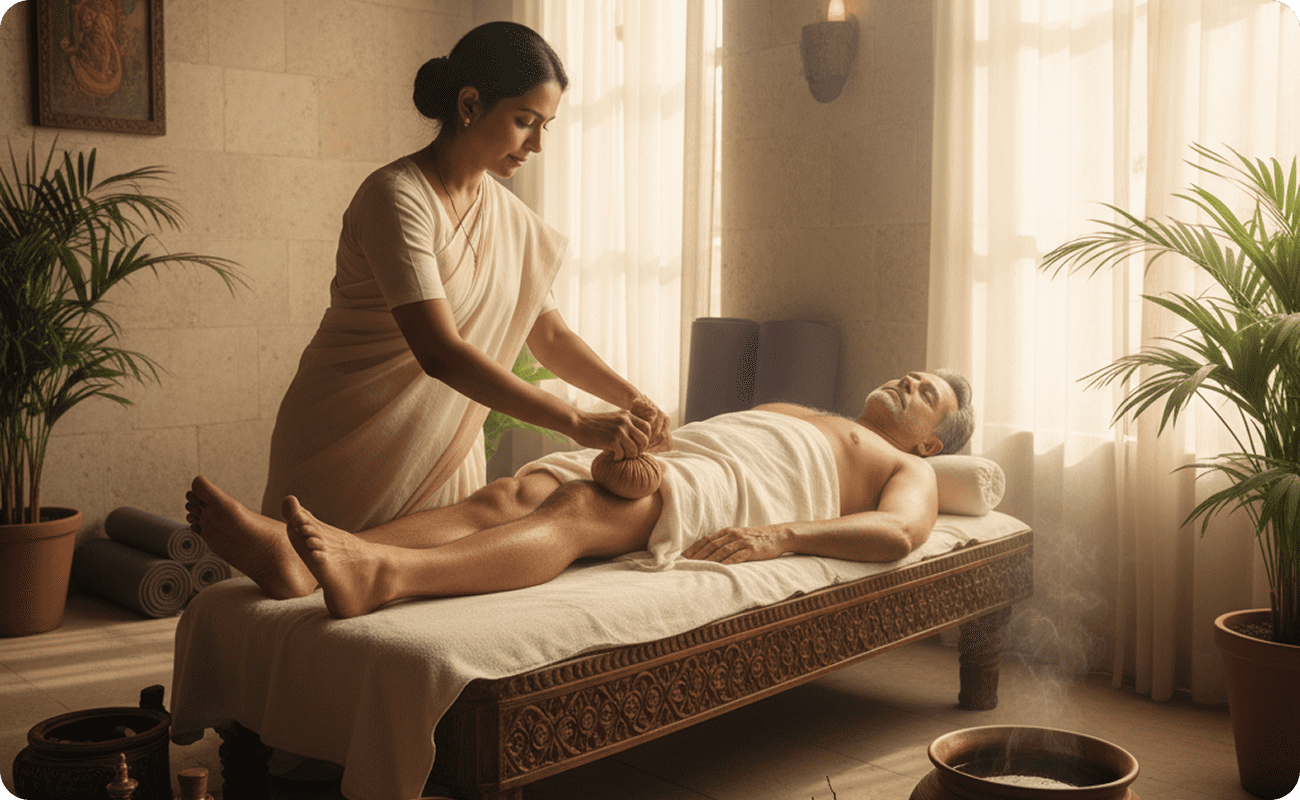 Experience deep relief as Ayurvedic Panchakarma therapies soothe inflammation & boost circulation.