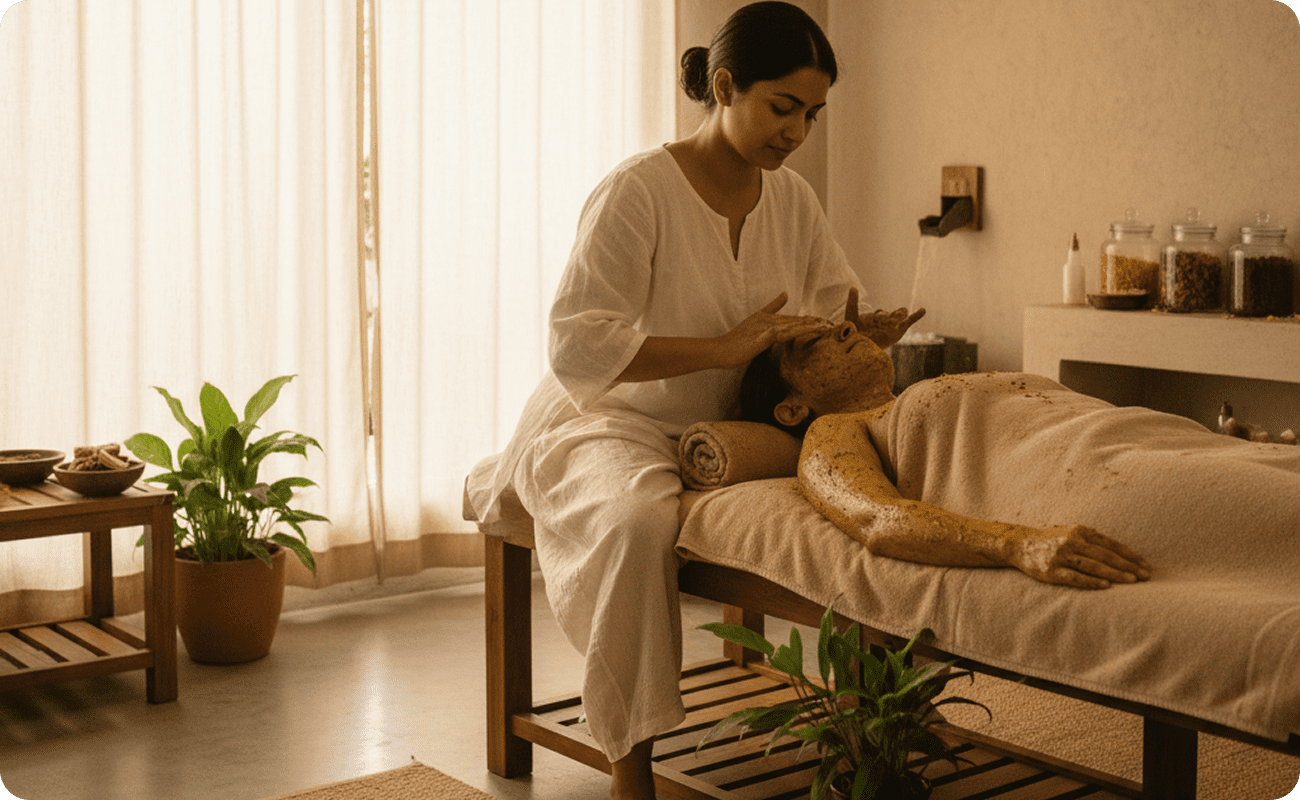 This purifying Ayurvedic treatment deeply detoxifies, improves complexion, and promotes long lasting freshness.